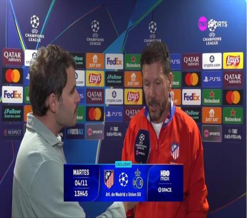 本赛季欧冠联赛阶段第4轮,马竞将主场对阵圣吉罗斯联合。在赛前发布会结束后,西蒙尼接受了TNT体育的采访。