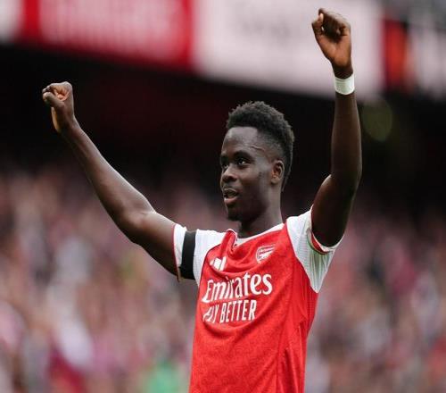 萨卡本赛季各项赛事代表阿森纳出场14次,有6球进账。